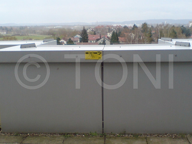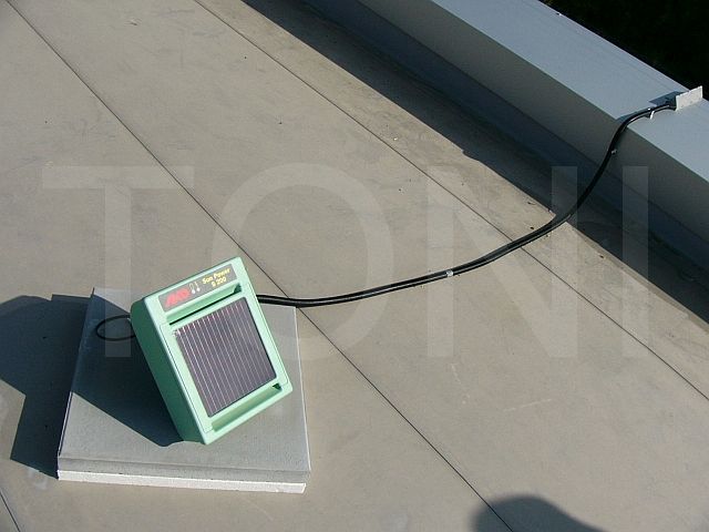 Insgesamt haben wir weit mehr als 500 Meter Attiken mit je drei parallen Drähten elektrisch geschützt. Die Montageschienen wurden so gesetzt, dass nur alle ca. 20 Meter eine Schiene notwendig ist. Die Stromversorgung haben wir mittels Solarstromgeber realisiert, so dass das System vollständig autark von der sonstigen Stromversorgung ist.