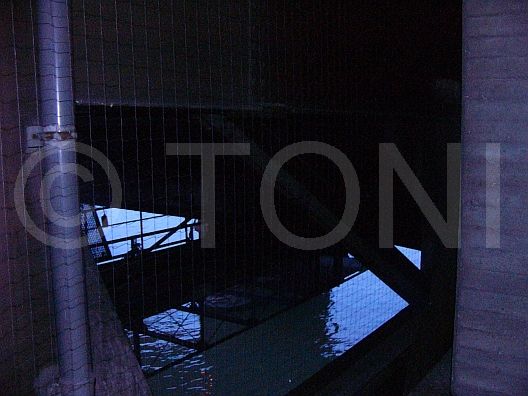 Bei einem Wasserkraftwerk in Würzburg wurde dieses Netz über einen Vorhof montiert. Durch die Wahl der Farbe und der passenden Maschenweite fällt das Netz so gut wie nicht auf.