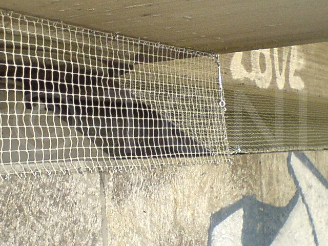 Ein zum Park hin offenes Treppenhaus bot Tauben Unterschlupf und Einflugmöglichkeiten. Hier haben wir ein grosses Netz installiert und so sicher den Einflug von Vögeln verhindert.