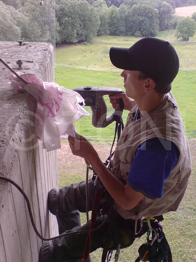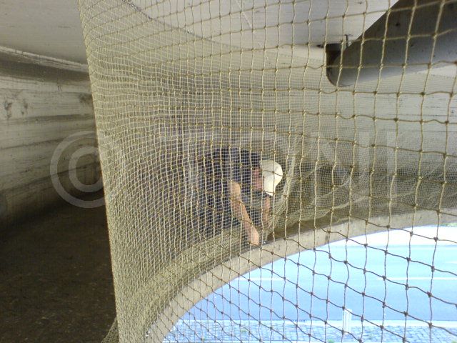 Wir haben mehrere Netze von weit über 1.000 Quadratmeter in Seiltechnik montiert. Der Zugang ist einfach mit Reissverschlüssen möglich. Die Montage haben wir teilweise in Industrieklettertechnik ausgeführt.
