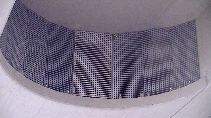 Dabei hat unser Team ca. 200 qm GFK (glasfaserverstärkte Kunststoff)-Gitterroste verbaut. Die Roste, V4A-Verbindungsmittel und speziell angefertigter Pfosten wurden nach genauer Detailplanung und 3D-Modellierung mittels Lasertechnik zugeschnitten und montiert.