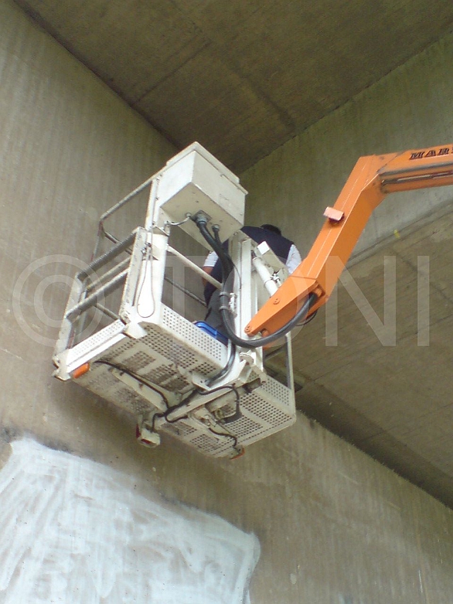 An dieser Brücke bei Bonn haben wir stark verschmutzte Widerlager gereinigt und desinfiziert. Der Vogeleinflugschutz wurde mit PE-Netzen Antec in Klebetechnik realisiert.