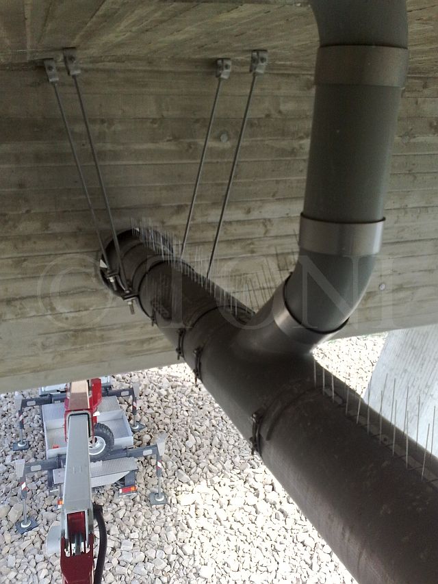 Der Kunde hat sich für unser Kombinationssystem entschieden, da es für fast alle Vögel, aber insbesondere die hier vorkommenden grösseren Vögel geeignet ist. Durch Elektroeinspeisung nach dem Weidezaunprinzip gibt es ausserdem keine Gewöhnung der Vögel.