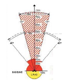 - LRAD ist ein flacher phasenkohärenter Schalldruckgeber, mit dem sich beliebige Geräusche (Greifvogelschreie, Störgeräusche, Angstschreie verschiedener Arten) bis zu 1.000m weit richten lassen. Der Schalldruckpegel beträgt bis zu 150 dB, der Abstrahlwinkel 30°.