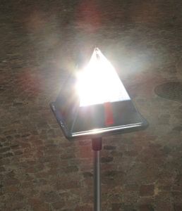 Ein rotierender Spiegel reflektiert die Strahlen der Sonne oder einer künstlichen Lichtquelle nach unten. Vögel nehmen das als eine Bedrohung wahr und fliehen.