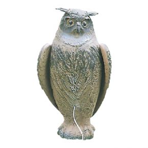 Lebensgroßer Uhu aus Kunststoff mit rotierenden Flügeln. Im Körper integrierte Elektronik mit 12V/4Ah-Batterie. Fernbedienung mit ca. 30m Reichweite. Wahlweise Automatikbetrieb: alle 4 Minuten bewegt sich der Uhu für 20 Sekunden.