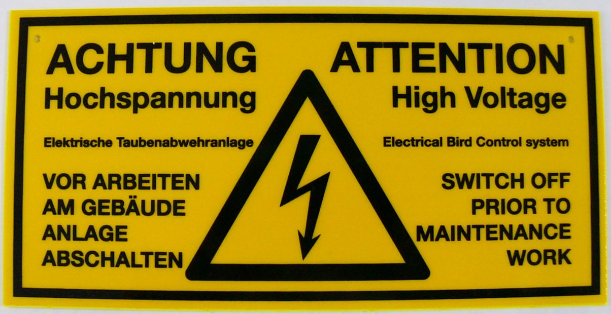 - "Hochspannung": Kunststoff, Maße: 200 x 100mm