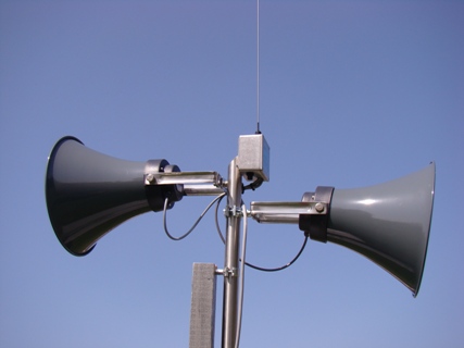 seinem Hochleistungsverstärker und 2 großen Druckkammerlautsprechern eine sehr