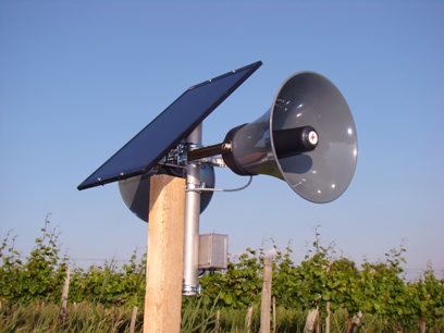 Das Prinzip dieses akustischen Systems liegt darin, die Vögel durch imitieren der natürlichen Feinde von den zu schützenden Flächen fern zu halten.Dies funktioniert durch Wiedergabe von 6 verschiedenen Geräuschen á 10 Sekunden in zufälliger Reihenfolge.