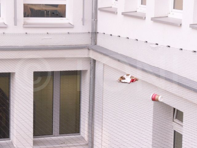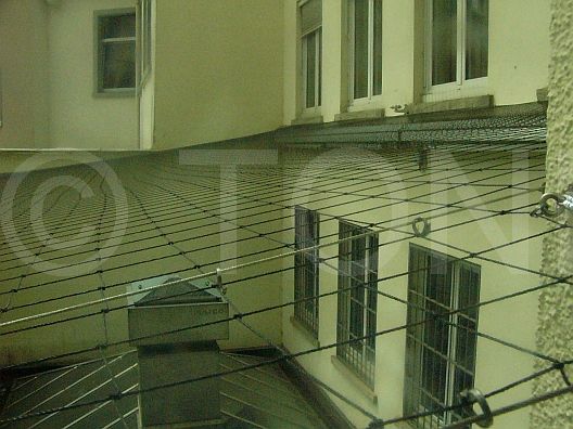 We installed netting using cable frame technology in the inner courtyard of a bank in Frankfurt. Pigeon dropping also had to be removed and disinfection carried out.