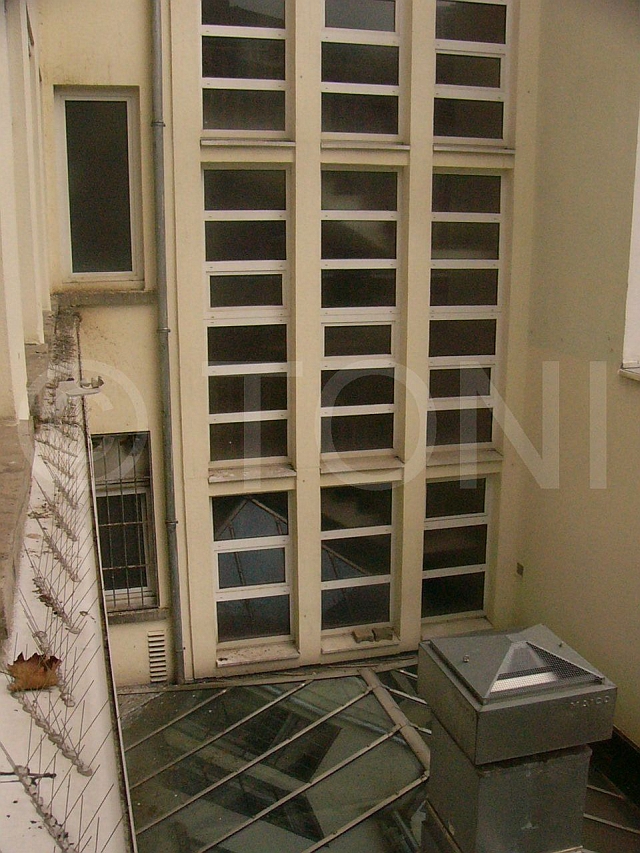 The concrete segments of this suspended facade provided pigeons with many roosting possibilities. As a result the facade and in particular the window sills were soiled by pigeons, some even brooding.