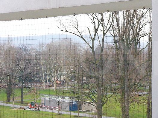 At this listed building at Ubierring in Cologne, we have installed PE-nettings using cable frame technology. The netting was attached to the windows and portholes of the facade as gently as possible.
