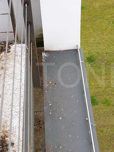 The inner courtyard of this housing was a favourite for a flock of pigeons. During renovations netting was used to cover the whole courtyard, so that the pigeons could no longer land. The guttering was protected with stainless steel spikes.