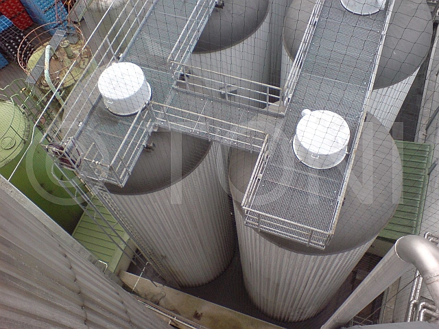 Several flocks of pigeons were spread out on and between the silos of a large brewery. The result wa heavy soiling and nesting between the silos.