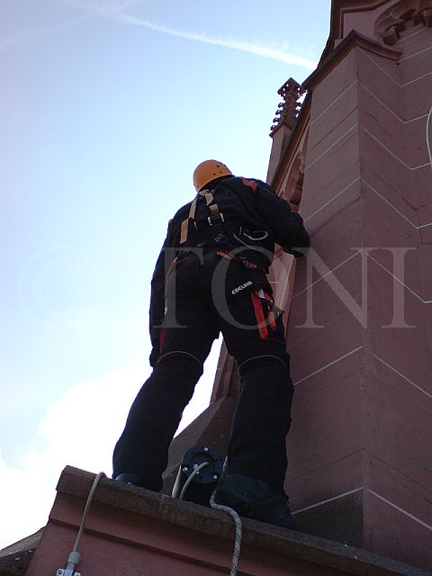Church in Allenbach: Cleaning of pigeon droppings and netting