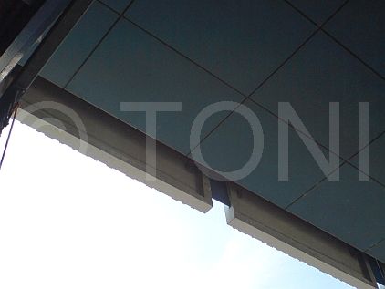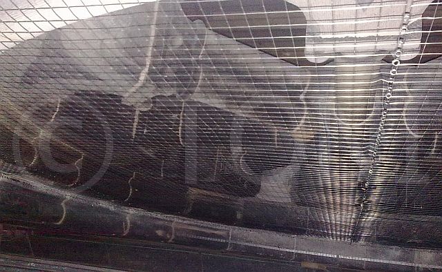 In front of the slat construction we stretched PE netting over the whole roof to prevent birds from sitting between the slats. The whole rear construction of the netting was in stainless steel.