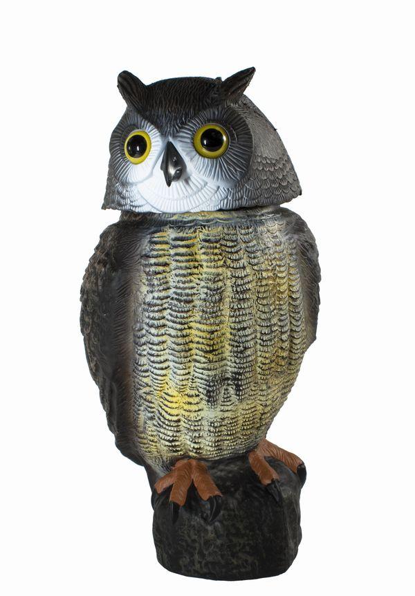 Wind action owl decoy with moving head.A natural bird deterrent.