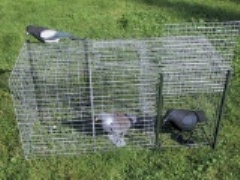 For catching crows, magpies, pigeons. With two chambers, two entrances 30 x 35 cm and a central compartment for bait or decoy.The trap is made of welded wire mesh.