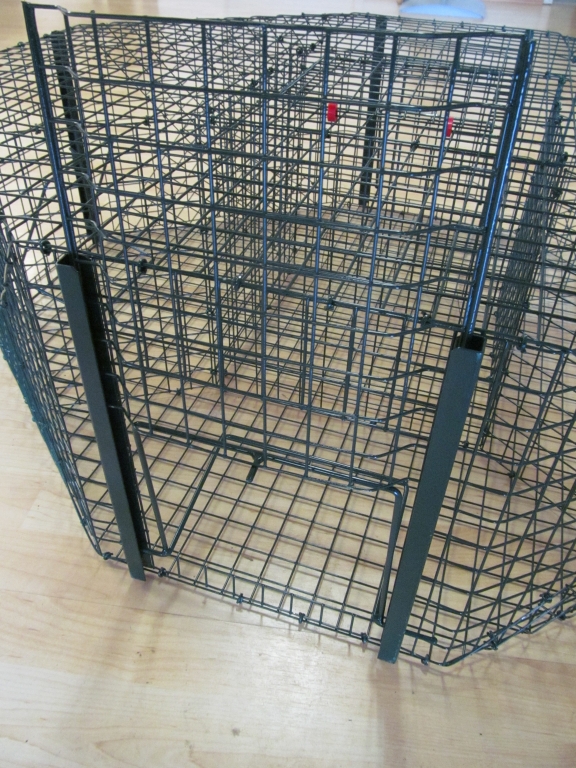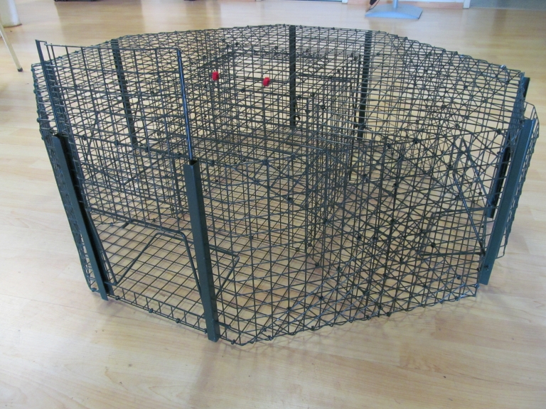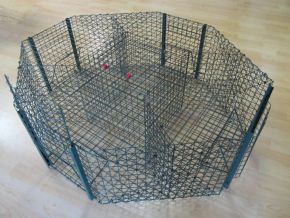 Octagonal live trap suitable for crows, magpies and pigeons. With four separate trapping chambers. Thus, it is not a mass trap, but a trap with four individual traps. A separate bait box is inside.Made of solid wire.