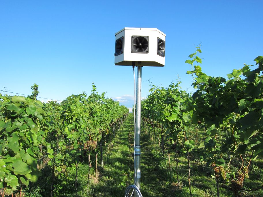 - The Ioudspeaker box must be fixed about 2 metres above the vines or trees.