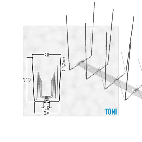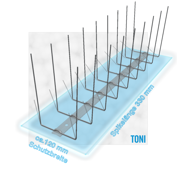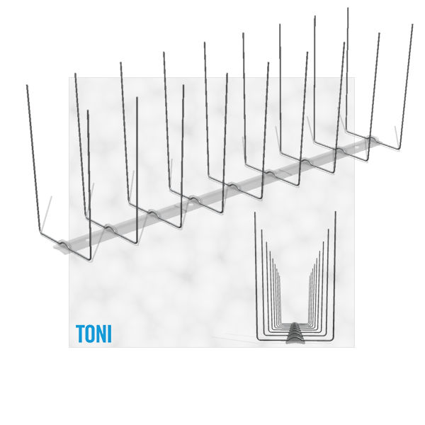 - Stainless steel wires attached to a transparent and UV-stabilised polycarbonate base.