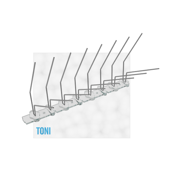 - Stainless steel wires attached to a transparent and UV-stabilised polycarbonate base.