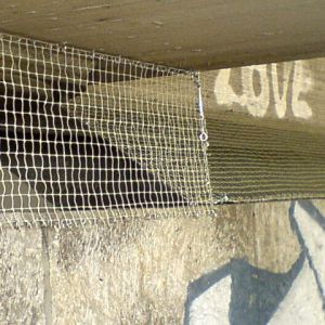 An dieser Brücke der Deutschen Bahn AG haben wir Auflagebänke der Brückenpfeiler mit PE-Netzen geschützt. Zu Wartungszwecken wurden die Netze mit Reissverschlüssen versehen, um den Zugang jederzeit zu ermöglichen.