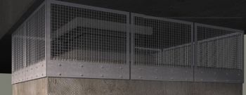 An dieser Brücke der Deutschen Bahn AG haben wir Auflagebänke der Brückenpfeiler mit PE-Netzen geschützt. Zu Wartungszwecken wurden die Netze mit Reissverschlüssen versehen, um den Zugang jederzeit zu ermöglichen.