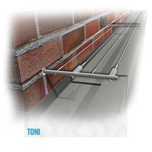Spezielles Drahtsystem, das direkt in der Hauswand verankert werden kann.